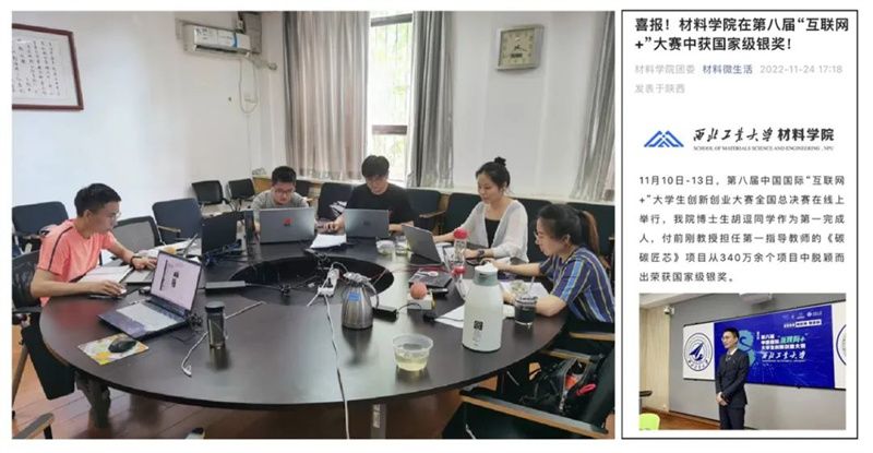 為強化團隊爭優創先氛圍,將所學知識本領與社會需求相融合,2022年初,他帶領團隊同學一起沖入第八屆中國國際“互聯網+”大賽。歷經200多個日夜,參與50余次項目評審與指導,他帶領團隊在340萬余個項目中一步一步取得了校賽特等獎、陜西省金獎和國家級銀獎的好成績。