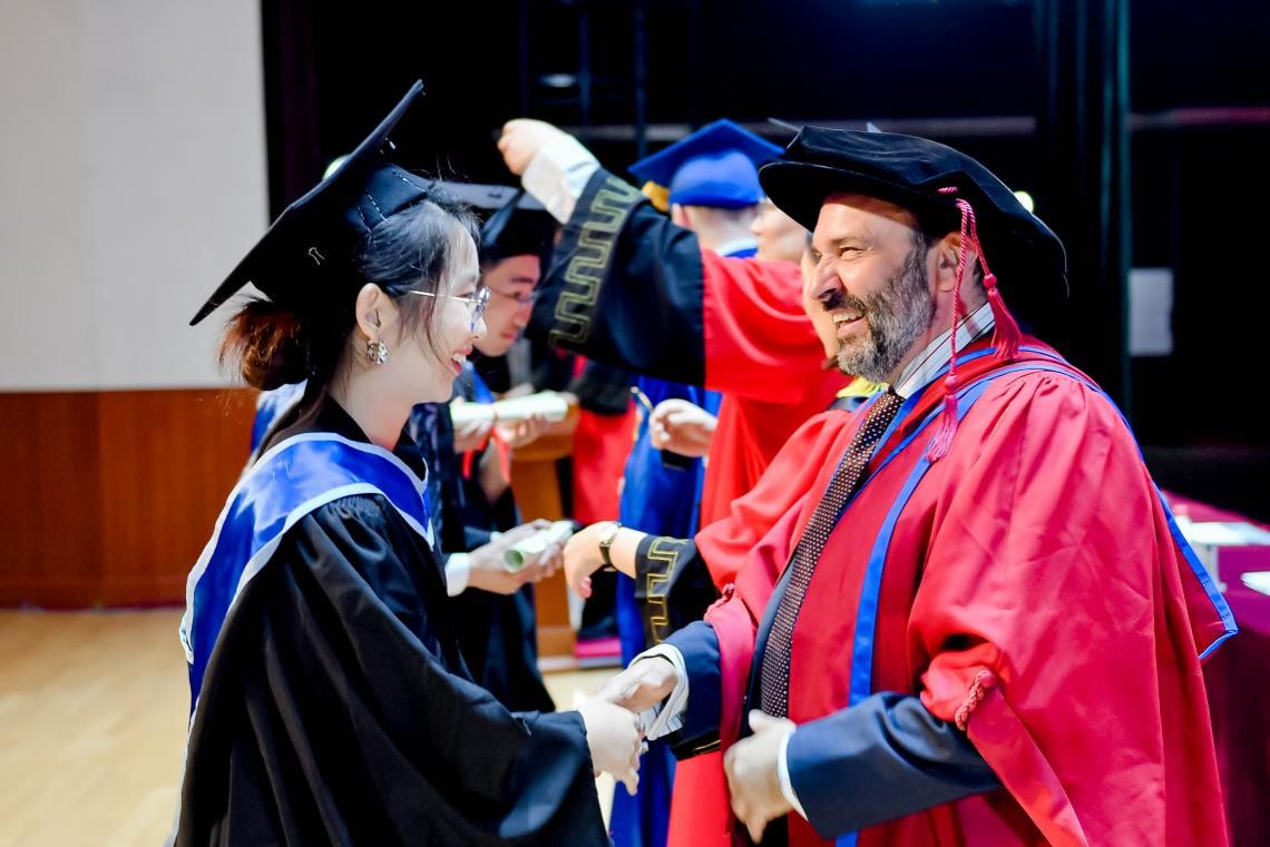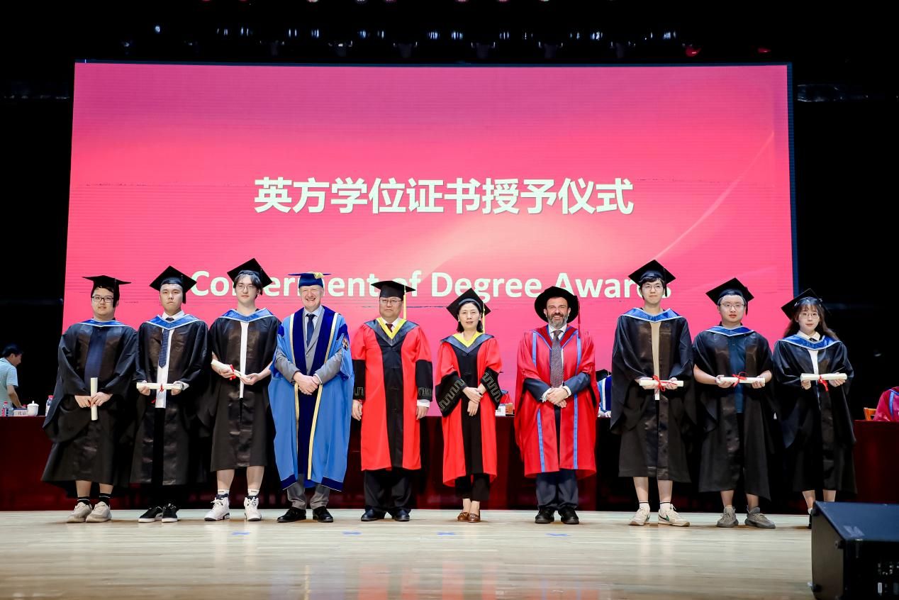 最后,在中英雙方母校的認可和祝福下,代富平書記宣讀本次畢業生名單和學位等級。宋保維教授、Colin Bailey教授、范曉麗教授和Gabriel Cavalli教授共同為畢業生頒發畢業證書、撥穗。