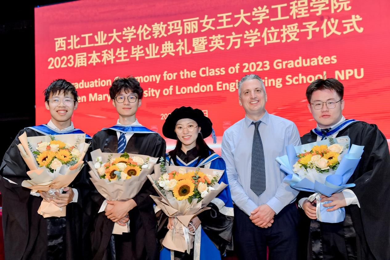 西工大新聞網6月26日電(文字 宋佳音 攝影 司哲)6月25日下午,西北工業大學倫敦瑪麗女王大學工程學院2023屆本科生畢業典禮暨英方學位授予儀式在長安校區翱翔學生活動中心舉行。西北工業大學校長宋保維,倫敦瑪麗女王大學校長Colin Bailey,西北工業大學副校長張艷寧,倫敦瑪麗女王大學副校長Wen Wang院士;兩校相關部門和學院負責人,以及學院2023屆全體畢業生及親友代表參加了畢業典禮。典禮由瑪麗女王工程學院院長范曉麗主持。