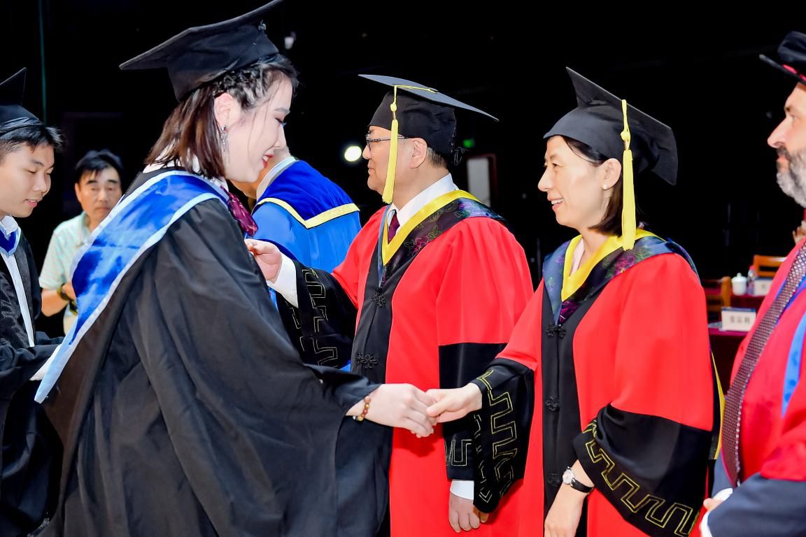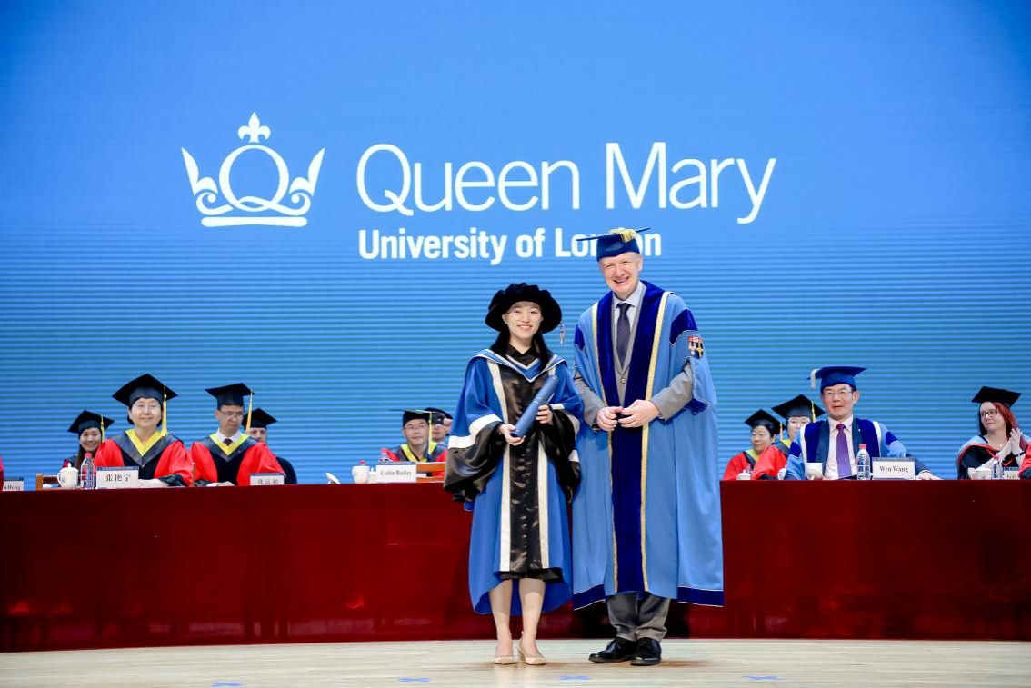 感恩師長后,Colin Bailey校長為鄧欣茹博士頒發博士學位證書。鄧欣茹博士于2019年在倫敦瑪麗女王大學獲得了材料科學博士學位,畢業后被聘任為QMES助理教授。她完美演繹了兩所大學、兩座城市、兩個國家依托瑪麗女王工程學院這一紐帶共同追求學術卓越的友誼大使角色。