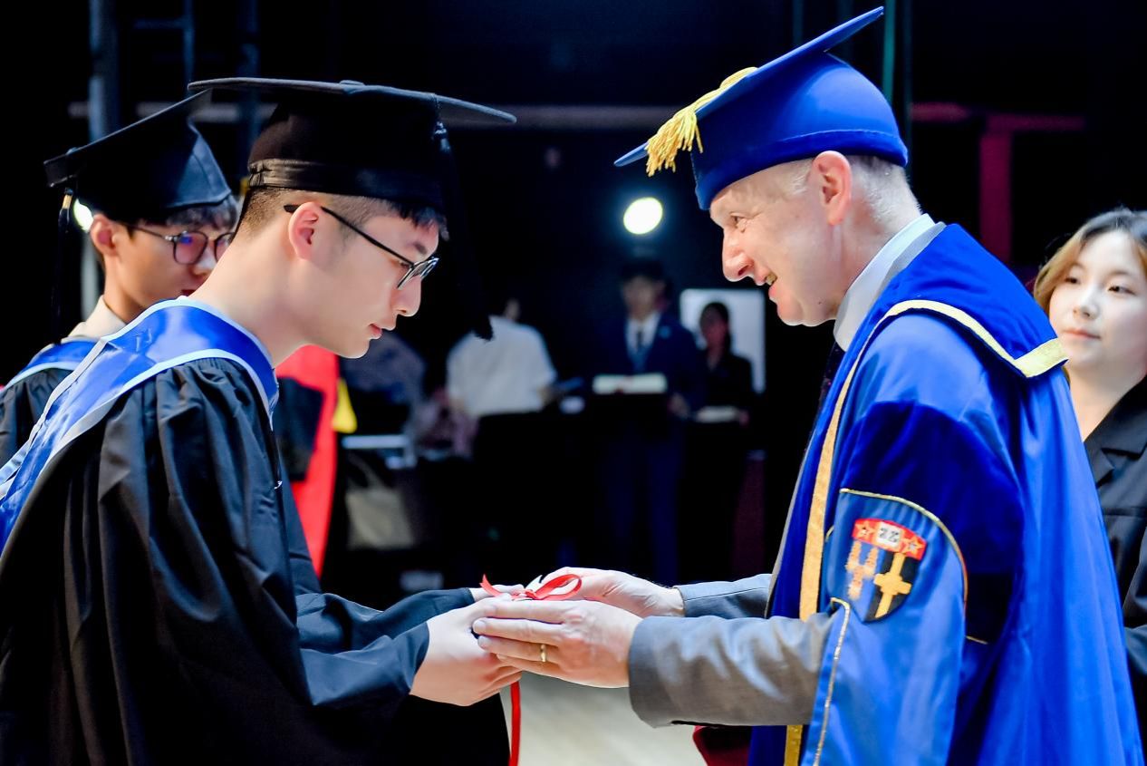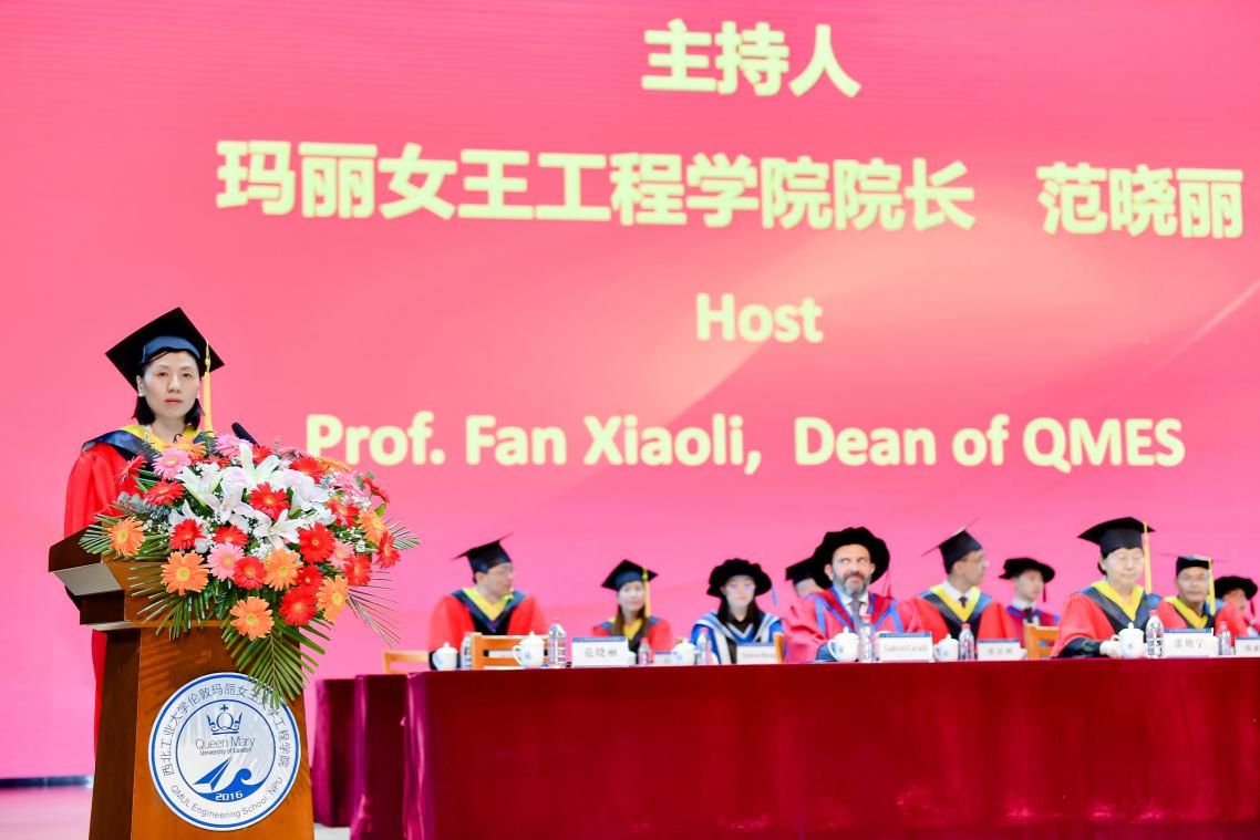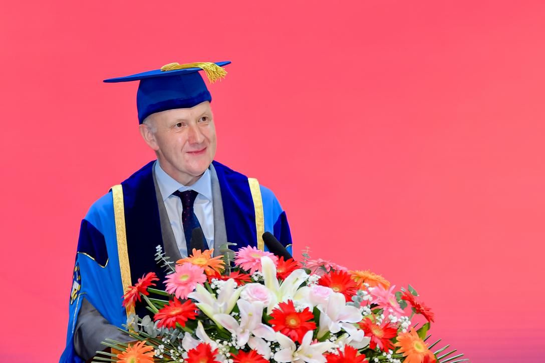 倫敦瑪麗女王大學校長Colin Bailey教授在畢業賀詞中表示,能第一次親臨典禮現場和同學們一起慶祝圓滿畢業非常高興。他對全體QMES教職員工、學生及其親友表示感謝。他指出,合作、溝通與協作是克服全球共同挑戰的關鍵因素。瑪麗女王工程學院始終堅持融合中英雙方高等教育的精髓,為學生提供優質的國際化本科教育。他強調,作為中外合作辦學模式下成長的學生,大家擁有獨特且強大的復合型能力,希望同學們在中國或未來工作和生活的地方,為社會發展做出積極貢獻。在未來的幾年中,倫敦瑪麗女王大學將和大家保持聯系,幫助大家充分利用倫敦瑪麗女王大學校友會的資源,通過全球校友網絡,建立新的聯系,持續發展和提升職業生涯。