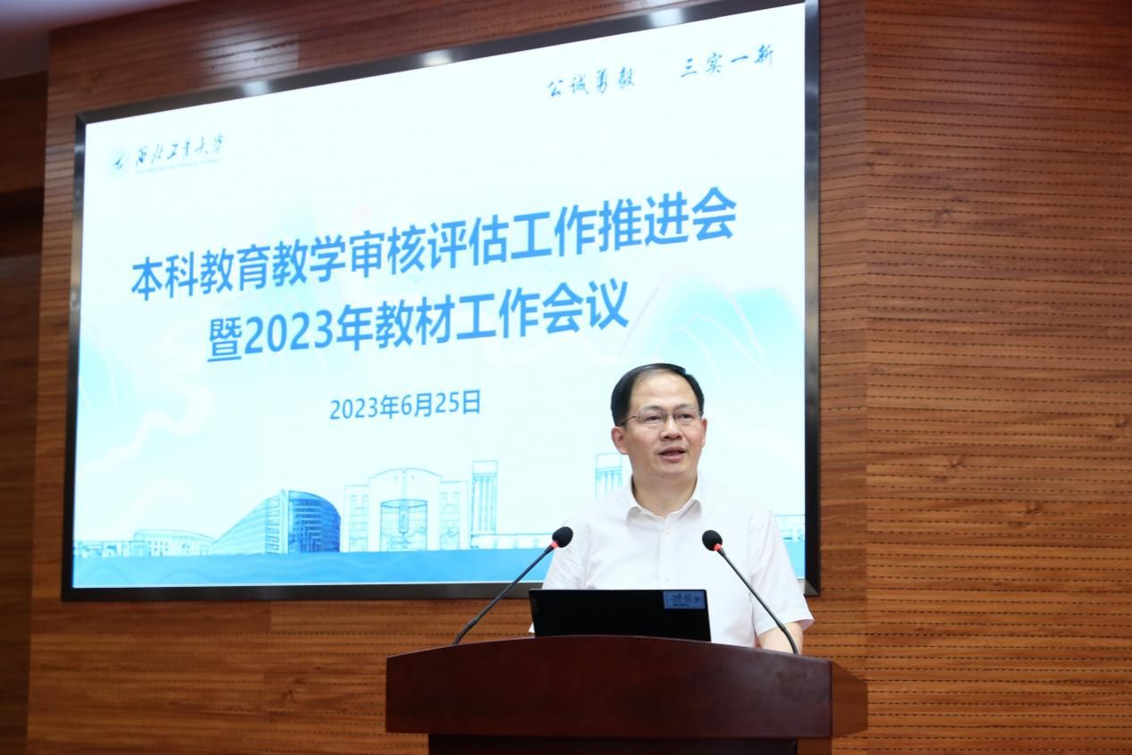 宋保維在總結(jié)講話中指出,本科教育教學(xué)評(píng)估是事關(guān)學(xué)校發(fā)展全局、社會(huì)聲譽(yù)和可持續(xù)發(fā)展的大事,學(xué)校各項(xiàng)評(píng)建工作正在有條不紊地推進(jìn),學(xué)校教材建設(shè)也取得了階段性的成效。結(jié)合學(xué)校實(shí)際,他提出三個(gè)具體要求:一是提高政治站位,以評(píng)估推動(dòng)落實(shí)立德樹人根本任務(wù)。全校上下要切實(shí)增強(qiáng)為黨育人、為國(guó)育才的責(zé)任感使命感,進(jìn)一步強(qiáng)化學(xué)校人才培養(yǎng)的中心地位和本科教學(xué)的核心地位,進(jìn)一步系統(tǒng)化、體系化設(shè)計(jì)“以學(xué)生為中心、以育人為主線”的教育教學(xué)制度體系,進(jìn)一步把以往校內(nèi)松散的政策措施進(jìn)行凝聚聯(lián)動(dòng)和升級(jí),切實(shí)構(gòu)建“三全育人”格局。各級(jí)領(lǐng)導(dǎo)干部、管理人員和廣大師生要樹立全局意識(shí),聚焦主責(zé)主業(yè),時(shí)刻牢記“教書育人”的初心和使命,不斷提高我校人才自主培養(yǎng)的能力和水平。二是緊抓人才培養(yǎng)核心環(huán)節(jié)和關(guān)鍵要素,以評(píng)估推動(dòng)深化教育教學(xué)改革創(chuàng)新。新一輪審核評(píng)估堅(jiān)持問題導(dǎo)向、目標(biāo)導(dǎo)向和效果導(dǎo)向,著力于推動(dòng)學(xué)校增強(qiáng)教育教學(xué)改革的動(dòng)力和活力,著力于解決制約學(xué)校發(fā)展的一系列深層次矛盾和問題,通過轉(zhuǎn)變觀念、優(yōu)化體系、創(chuàng)新模式、改革內(nèi)容方法,切實(shí)將教育教學(xué)改革向縱深推進(jìn)。要堅(jiān)持以下五個(gè)關(guān)鍵點(diǎn):第一,創(chuàng)新性開展招生工作;第二,進(jìn)一步謀劃公共教學(xué)平臺(tái)建設(shè);第三,打造高質(zhì)量教學(xué)名師隊(duì)伍;第四,提升數(shù)學(xué)、外語(yǔ)等基礎(chǔ)課程教學(xué)水平;第五,提高本科畢業(yè)生深造質(zhì)量。三是加強(qiáng)組織領(lǐng)導(dǎo),以評(píng)估推動(dòng)落實(shí)內(nèi)部質(zhì)量保障主體責(zé)任。一要高度重視,“一把手”帶頭,扎實(shí)推進(jìn)評(píng)建工作有序開展;二要堅(jiān)持問題導(dǎo)向,對(duì)自評(píng)過程中發(fā)現(xiàn)的問題一抓到底、堅(jiān)決整改;三要著眼長(zhǎng)遠(yuǎn),用好評(píng)估常模指標(biāo),推進(jìn)教育數(shù)字化改革;四要對(duì)標(biāo)對(duì)表評(píng)估要求,常態(tài)化抓好教學(xué)基礎(chǔ)環(huán)節(jié)。
