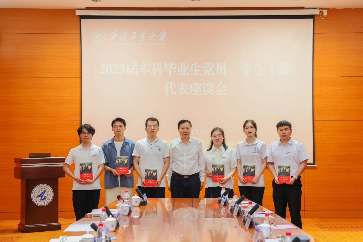 西工大新聞網(wǎng)7月6日電(文字 薛楊 趙珍 攝影 盧迪 司哲)7月5日下午,我校2023屆本科畢業(yè)生黨員、學(xué)生干部代表座談會(huì)在長(zhǎng)安校區(qū)召開(kāi)。校黨委書(shū)記李言榮,黨委常委、副校長(zhǎng)詹浩及相關(guān)職能部門(mén)負(fù)責(zé)人,與來(lái)自各學(xué)院20位本科畢業(yè)生黨員、學(xué)生干部代表親切交流。座談會(huì)由李言榮主持。