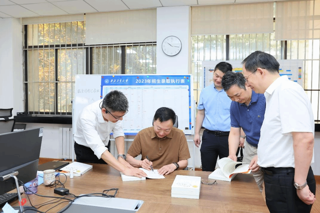 在查看了已完成錄取工作的相關省份錄取分數線、錄取人數,并聽取了相關匯報后,李言榮對學校2023年本科招生和現階段錄取工作給予肯定,對錄取現場全體工作人員在暑假期間堅守工作崗位、全情投入表示慰問。他強調,學校聚天下英才而育之,本科招生是“為國選材,為學校選材”的首要環節,教務口要加強組織領導,要及時分析研究錄取情況,做到來年面上有布局、點上有突破,不斷提高生源質量,要加強與各重點中學的實質性合作,要加強與各省招生管理部門的溝通,要講好西工大的故事。