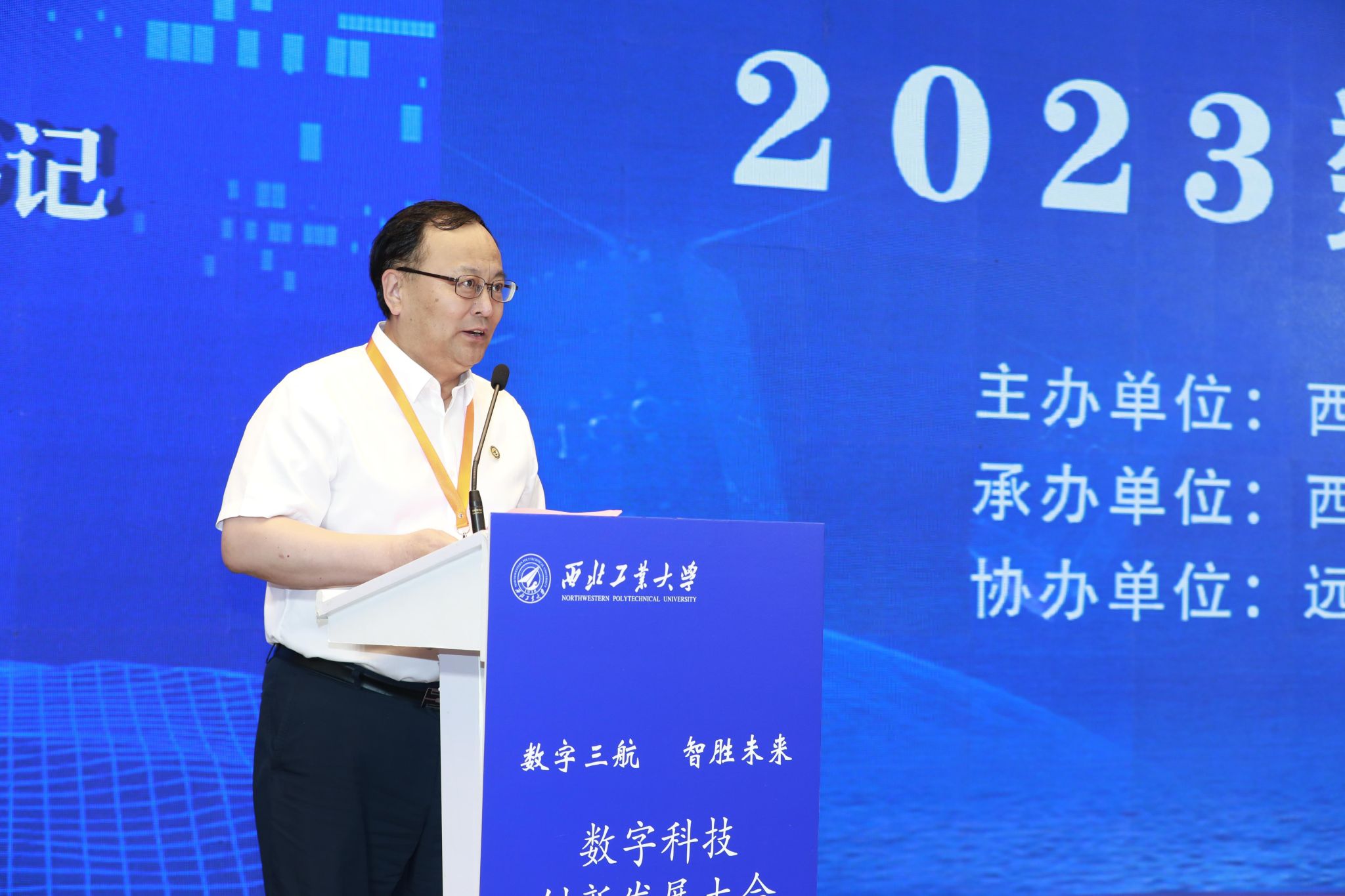 西工大新聞網7月30日電(符旭 米雪)7月29日,由西北工業大學主辦,西北工業大學北京研究院、中關村科技園區通州園管理委員會承辦,遠望智庫、北京三航科創投資管理有限公司協辦的“2023數字科技創新發展大會”在北京城市副中心舉辦。中國工程院院士邱志明,中國工程院院士張平,中國工程院院士朱廣生,中國科學院院士于登云,西北工業大學校長宋保維,工業和信息化部信息技術發展司一級巡視員(主持工作)王建偉,北京市經濟和信息化局局長姜廣智,北京市通州區區長鄭皓,中國航空工業集團有限公司總經理郝照平,中國航天科技集團有限公司副總經理張宏俊出席會議。