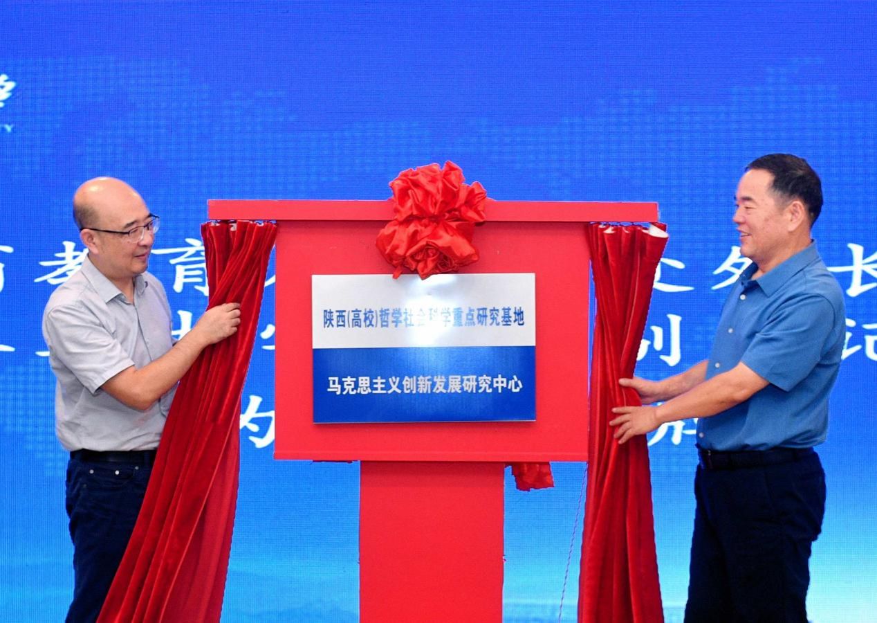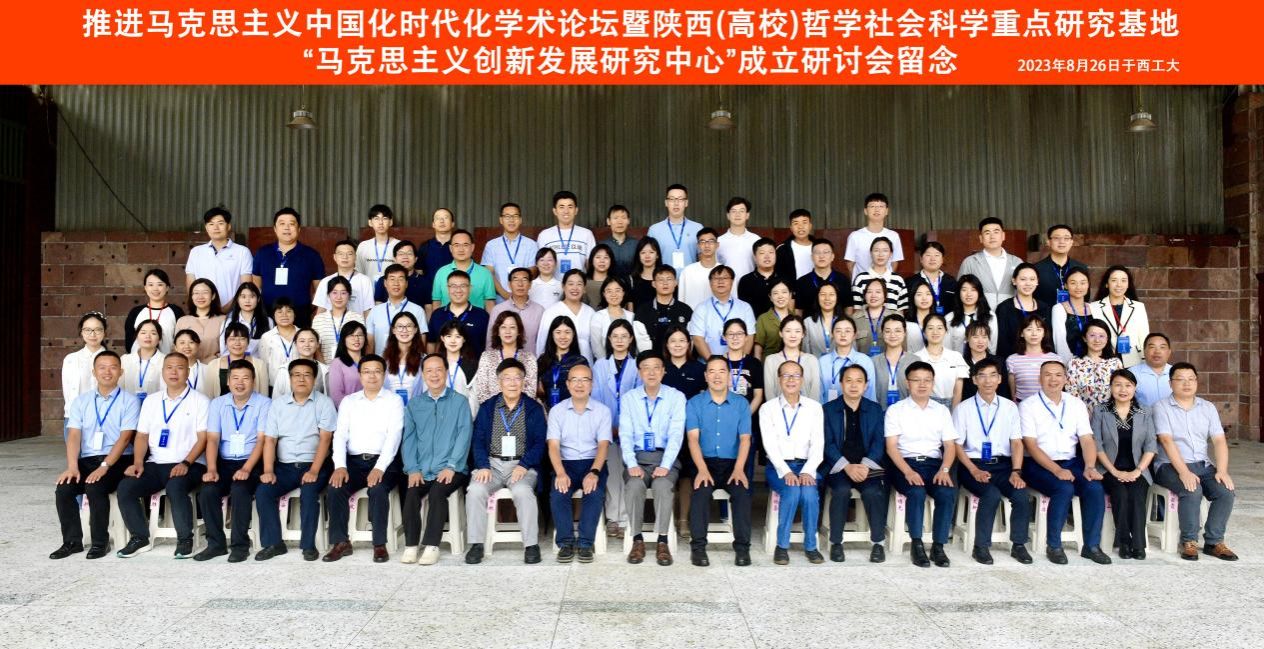 隨后,朱曉冬與陳建有為陜西(高校)哲學(xué)社會科學(xué)重點研究基地“馬克思主義創(chuàng)新發(fā)展研究中心”揭牌,與會專家學(xué)者合影留念。