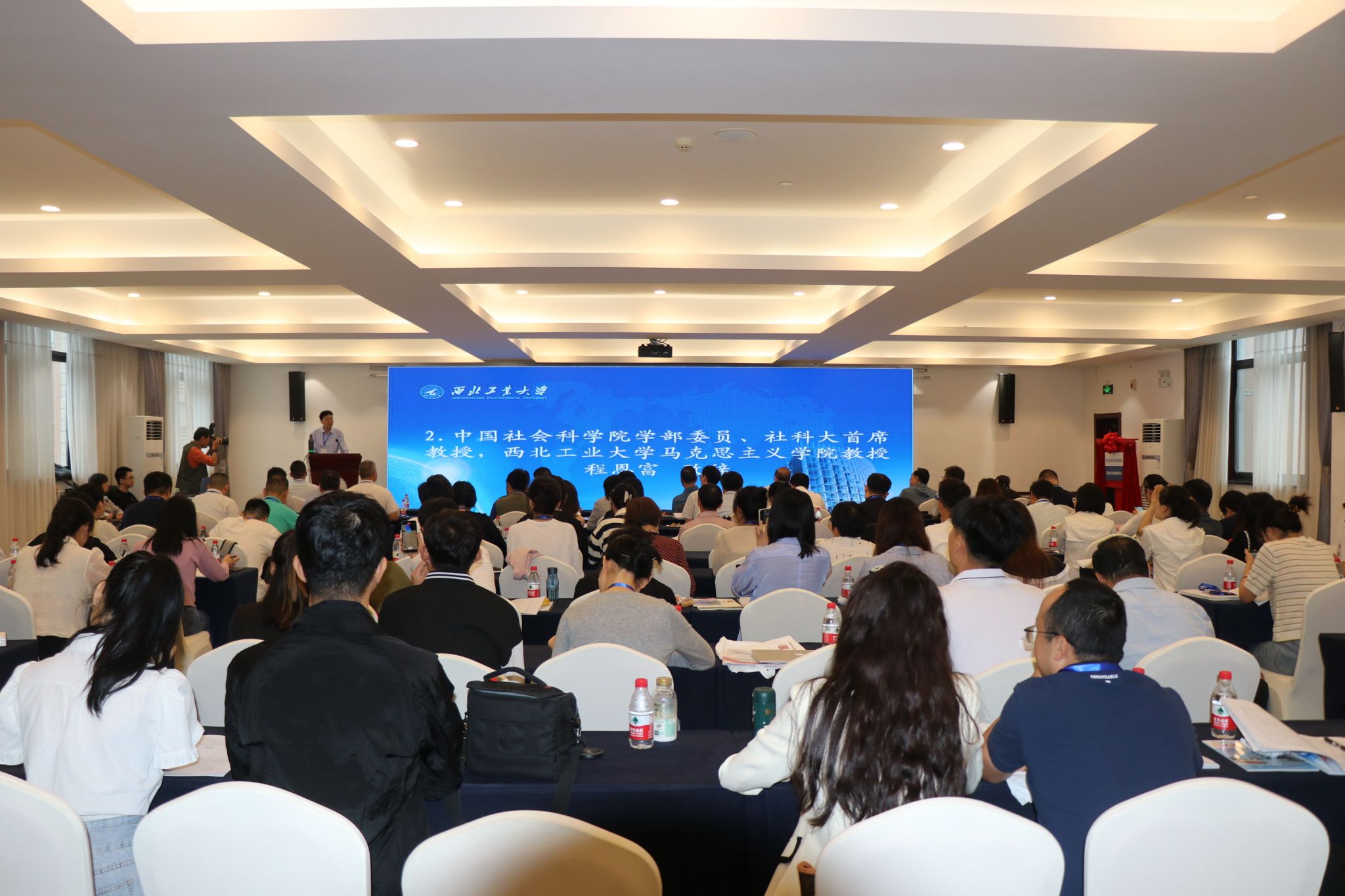 西工大新聞網(wǎng)8月31日電(文字 謝佳君 孫紹勇 攝影 郭友軍 謝佳君)8月26日,由陜西(高校)哲學(xué)社會科學(xué)重點研究基地、西北工業(yè)大學(xué)科學(xué)技術(shù)研究院、西北工業(yè)大學(xué)社會科學(xué)界聯(lián)合會、馬克思主義學(xué)院主辦,《政治經(jīng)濟學(xué)研究》《海派經(jīng)濟學(xué)》《西北工業(yè)大學(xué)學(xué)報(社會科學(xué)版)》《河北經(jīng)貿(mào)大學(xué)學(xué)報》《世界馬克思主義研究》協(xié)辦的推進馬克思主義中國化時代化學(xué)術(shù)論壇暨陜西(高校)哲學(xué)社會科學(xué)重點研究基地“馬克思主義創(chuàng)新發(fā)展研究中心”成立研討會在西北工業(yè)大學(xué)順利舉行。來自中國社會科學(xué)院、清華大學(xué)、北京大學(xué)、中國人民大學(xué)、上海交通大學(xué)、復(fù)旦大學(xué)、山東大學(xué)等30余所高校、科研機構(gòu)的專家學(xué)者,以及高校師生100余人參加了本次論壇。