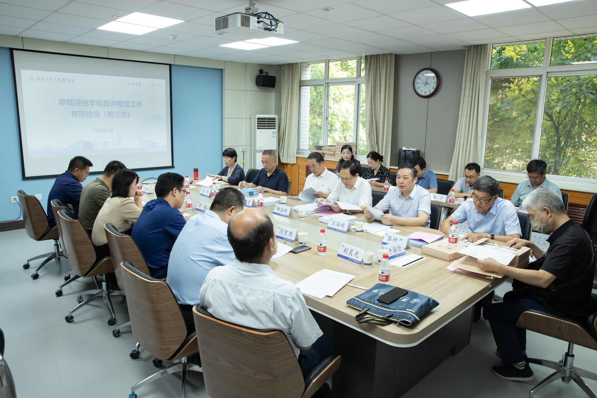 西工大新聞網9月22日電(王青青 高丹丹 攝影 周軍平)為確保我校審核評估學院自評估整改工作取得實效,學校于9月12日-9月19日期間,先后組織開展了共五場、覆蓋全部學院的專項檢查工作。校領導陳建有、侯成義、楊益新,以及18位專家、教務處和各學院負責人參加了此次專項檢查。