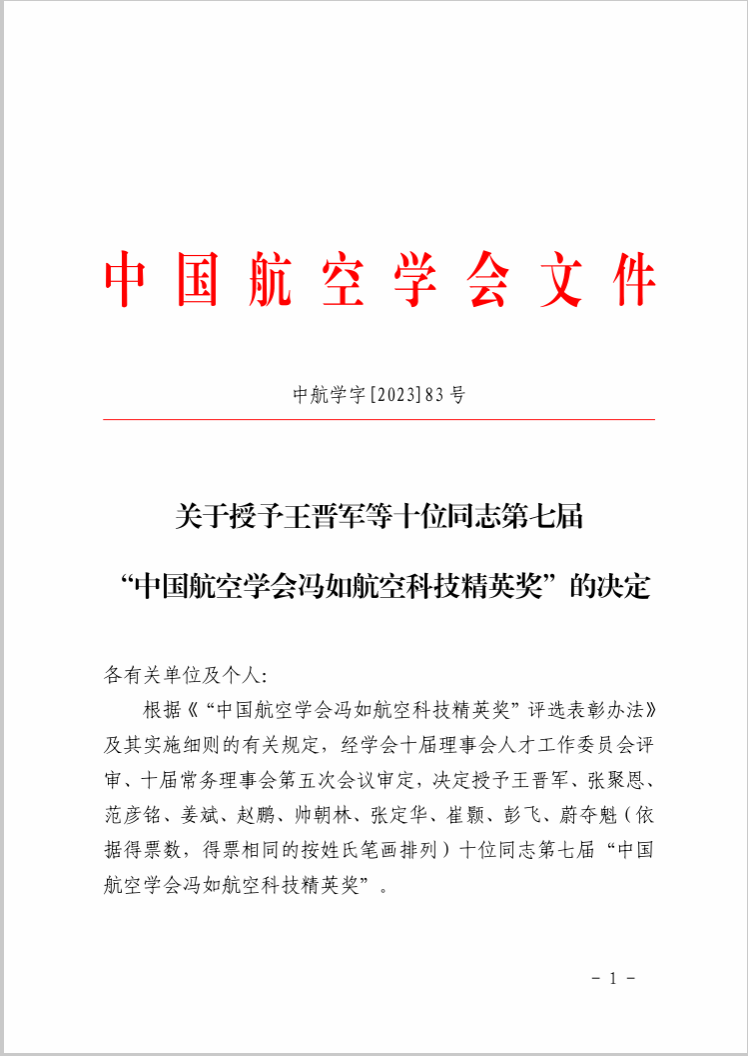 西工大新聞網(wǎng)9月24日電(郭晨 陳瑩)近日,由中國航空學(xué)會主辦的第七屆“馮如航空科技精英獎(jiǎng)”(以下簡稱“馮如獎(jiǎng)”)評選結(jié)果正式揭曉,共有10位航空科技工作者獲此殊榮。西北工業(yè)大學(xué)張定華教授與校友趙鵬、帥朝林、崔顥獲獎(jiǎng)。