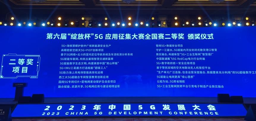 “西工大5G超融合專網(wǎng)智慧教育創(chuàng)新應(yīng)用”項目在工信部舉辦的第六屆“綻放杯”5G應(yīng)用征集大賽全國總決賽中獲得二等獎。2023年10月21日,中國5G發(fā)展大會在上海舉行了頒獎儀式,工業(yè)和信息化部黨組成員、副部長張云明,上海市人民政府副市長陳杰,工業(yè)和信息化部信息通信發(fā)展司司長謝存等領(lǐng)導(dǎo)為獲獎項目頒獎。我校代表上臺領(lǐng)獎,并受邀在大會主論壇上做經(jīng)驗交流。