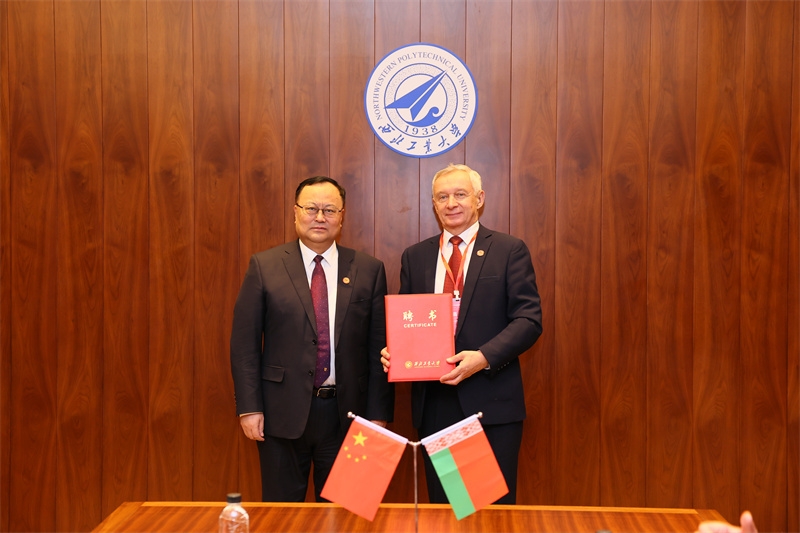 宋保維分別為謝爾蓋·安東諾維奇·奇日克和謝爾蓋·弗拉基米羅維奇·阿布拉梅伊科頒發西北工業大學名譽教授聘書并佩戴校徽。他表示,兩位院士是學術界的頂尖人才,在材料以及計算機視覺領域學術成就卓越,他們的加盟將為我校各方面發展帶來強有力的支持。西安是古絲綢之路的起點,此次授聘和簽約也將是雙方合作的起點,期待雙方攜手努力,為推動中白兩國在教育、科技領域的交流與合作,為兩國友好關系的發展作出積極貢獻。