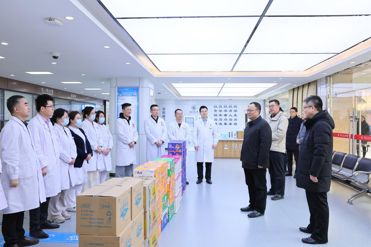 在校醫院,看到不少患者正在就診、醫護人員堅守崗位,宋保維向仍在忙碌的醫生和護士表示衷心的感謝。他說,學校眾多師生員工的生命健康,都有賴于校醫院一年365天的細心守護,希望醫護人員保重身體,祝大春節快樂、闔家幸福!