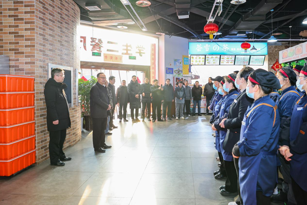 宋保維一行來到友誼校區學生第二食堂,向仍然在各個崗位上工作的后勤員工送上節日的問候。他說,時值寒假,春節也即將到來,但學校的餐飲、物業、環衛等后勤服務保障工作一直沒有停歇,向大家辛勤的工作表示感謝,祝大家春節快樂!