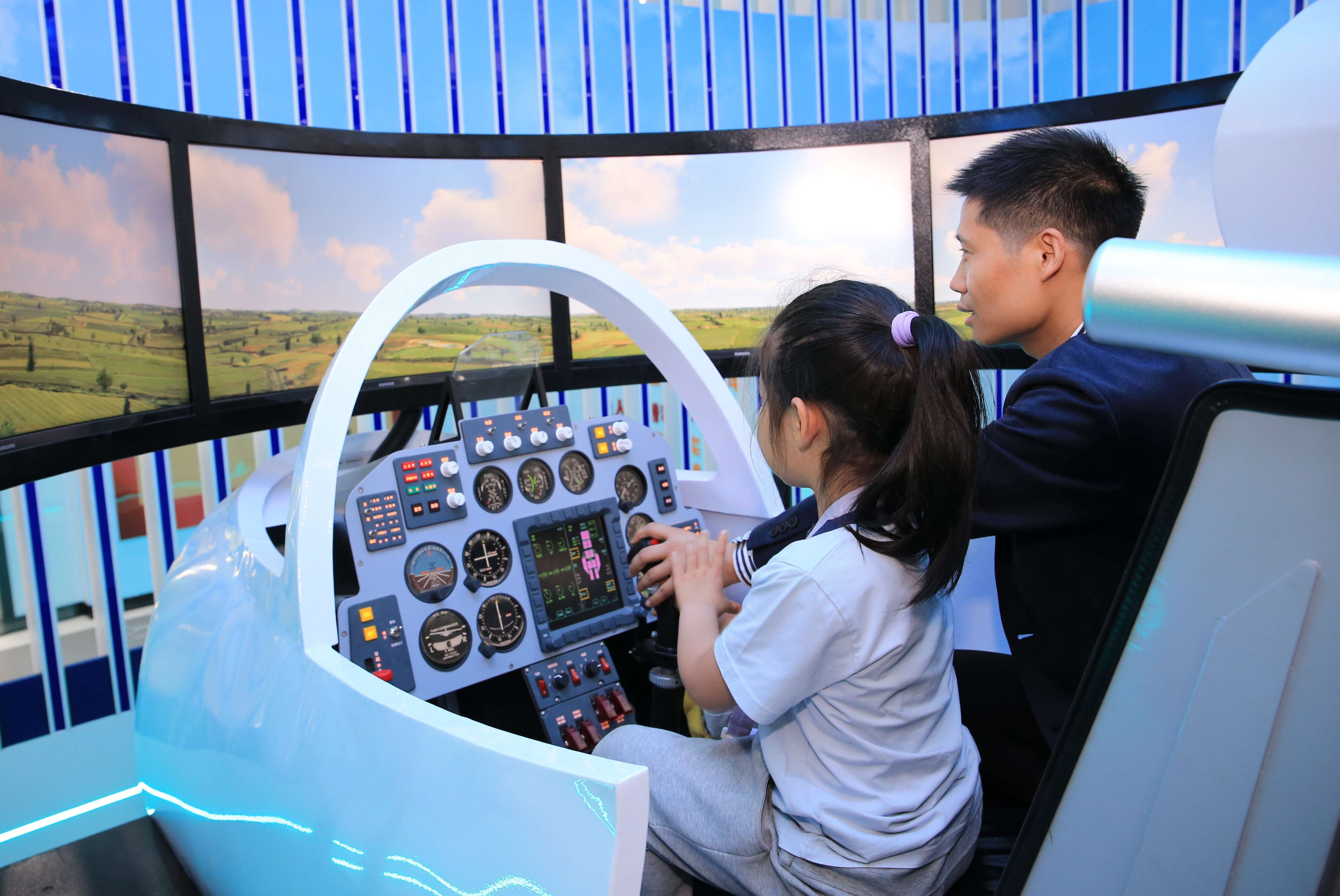 聽志愿者爸爸講述飛行的故事,近距離觀看和觸摸各種飛機模型和系列無人機,在虛擬駕駛模擬艙中體驗,感受駕駛飛機在天空翱翔的感覺,種下一顆顆充滿希望的航空夢。