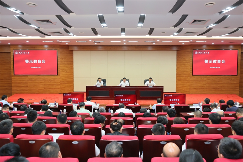 6月14日,按照學校黨紀學習教育工作安排,我校召開警示教育大會,傳達學習習近平總書記關于全面加強黨的紀律建設的重要論述,把學習成果轉化為推動全面從嚴治黨向縱深發展、推動學校各項事業發展的實際成效。全體校領導、校黨委委員、校紀委委員、全體中層干部以及重點領域單位的科級干部參加會議。黨委書記李言榮,校長宋保維分別講話并講授廉潔黨課。黨委副書記、紀委書記、監察專員呂衛東通報了違紀違法典型案例。大會由宋保維主持。