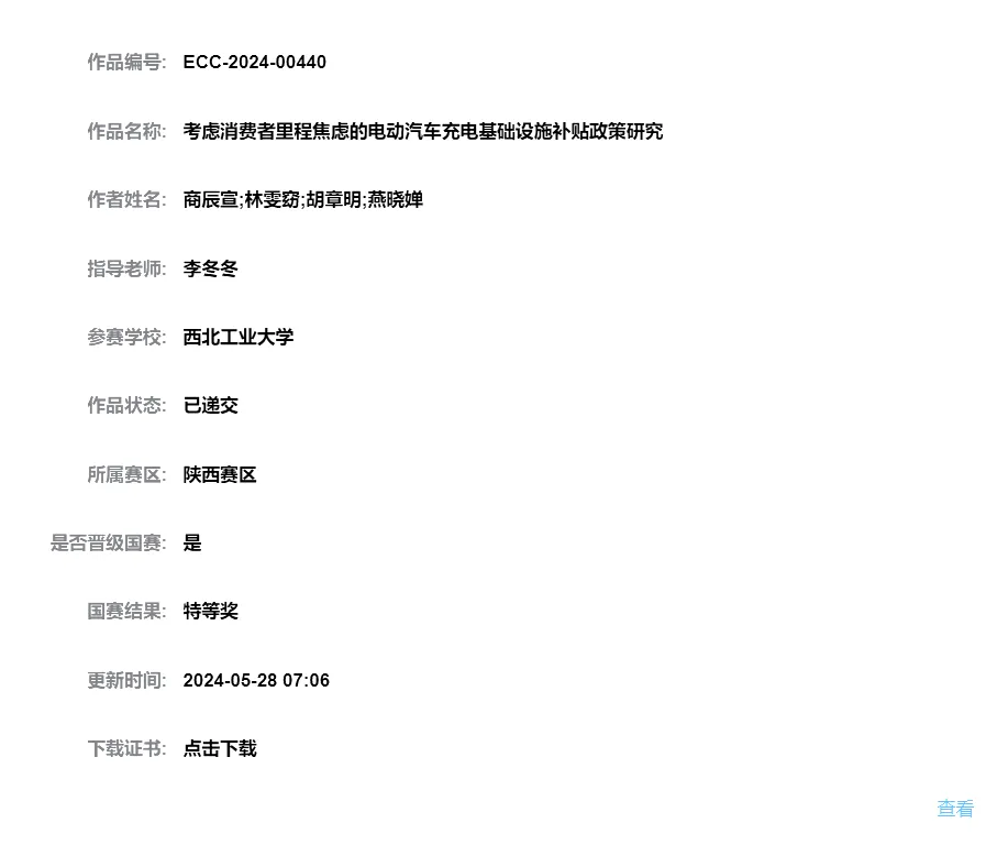 在學校教務部的指導和支持下,公共政策與管理學院的新文科創新實踐基地積極組織此次競賽。基地指導老師李冬冬帶隊,我校公共政策與管理學院本科生商辰宣、林雯窈、胡章明、燕曉嬋組成的參賽團隊憑借參賽論文《考慮消費者里程焦慮的電動汽車充電基礎設施補貼政策研究》,榮獲全國特等獎。