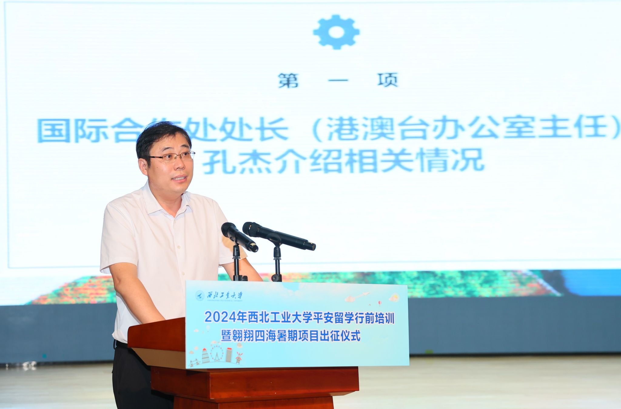 翱翔四海看世界,揚帆五洲逐夢想。在教育部留學(xué)服務(wù)中心的大力支持下,6月27日下午,2024年西北工業(yè)大學(xué)“平安留學(xué)”行前培訓(xùn)暨“翱翔四海”暑期項目出征儀式在長安校區(qū)翱翔學(xué)生活動中心舉行。我校副校長詹浩,陜西省政府外事僑務(wù)辦公室原黨組成員、副主任宮貴俊,西安市公安局教官楊明華,學(xué)校黨委學(xué)工部、黨委保衛(wèi)部、團委、保密處、體育部、國際合作處相關(guān)負(fù)責(zé)同志,各團隊帶隊老師及項目學(xué)生參加。