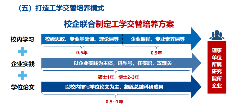 聯(lián)合企業(yè)編制電子信息、機(jī)械、材料與化工、能源與動(dòng)力4個(gè)類(lèi)別19個(gè)領(lǐng)域工程碩博士研究生培養(yǎng)方案,首次制定學(xué)校四個(gè)類(lèi)別專(zhuān)業(yè)學(xué)位直博生的培養(yǎng)方案。牽頭制定電子信息、機(jī)械等4個(gè)類(lèi)別《專(zhuān)業(yè)學(xué)位碩士研究生學(xué)位論文成果實(shí)施細(xì)則》,通過(guò)后專(zhuān)業(yè)學(xué)位碩士畢業(yè)成果包括:專(zhuān)題研究類(lèi)論文、調(diào)研報(bào)告、案例分析報(bào)告、產(chǎn)品設(shè)計(jì)(作品創(chuàng)作)、方案設(shè)計(jì)等形式,確保研究成果在應(yīng)用中落地落細(xì)落實(shí)。