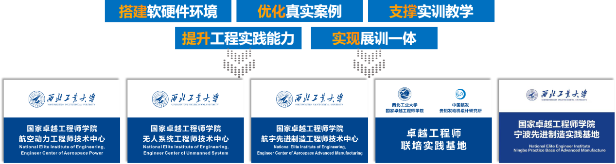以國(guó)家級(jí)/省部級(jí)重點(diǎn)實(shí)驗(yàn)室為依托,已掛牌建設(shè)無(wú)人系統(tǒng)、航空動(dòng)力、航宇智能制造3個(gè)類(lèi)企業(yè)級(jí)工程技術(shù)中心,聯(lián)合企業(yè)開(kāi)設(shè)12門(mén),共計(jì)240課時(shí)的工程師特色實(shí)踐課程。與中國(guó)航發(fā)貴陽(yáng)所、寧波研究院、中航西飛、兵器愛(ài)生集團(tuán)建設(shè)卓越工程師實(shí)踐基地。